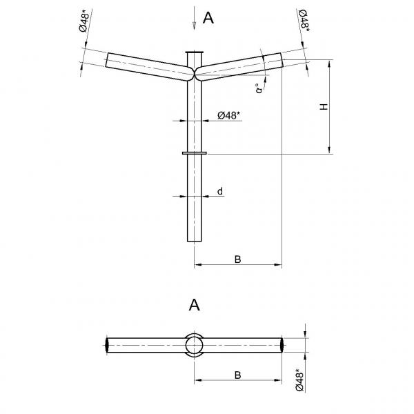 Двухрожковые кронштейны К21-0,5-0,5-1-1 предназначены для крепления светильника на трубчатой опоре освещения.