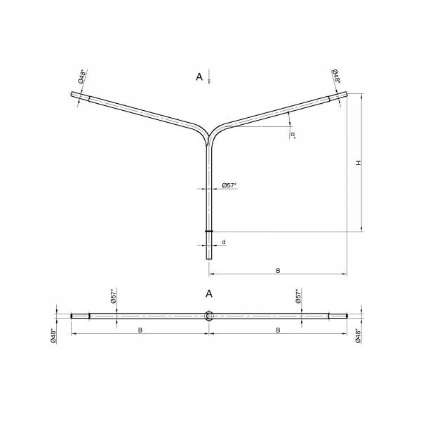 Двухрожковые кронштейны К3-1,5-2,5-1-1 предназначены для крепления светильника на трубчатой опоре освещения.
