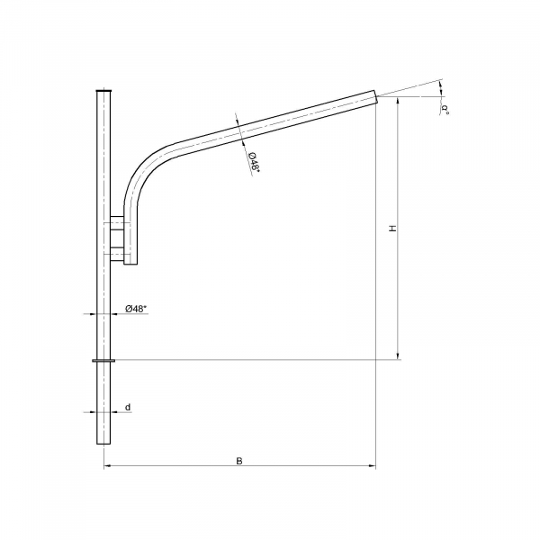 Однорожковые кронштейны К71-1,5-1,5-1-1 предназначен для крепления светильника на трубчатой опоре освещения. Завод опор освещения «Альдекс» изготавливает однорожковые консольные кронштейны из стального проката. Собственное производство позволяет выполнять изделия надлежащего качества и в кратчайшие сроки. Конструкция однорожковых кронштейнов К71-1,5-1,5-1-1. Конструкция консольных однорожковых кронштейнов К71-1,5-1,5-1-1 представляет собой гнутую металлическую трубу заданных размеров.