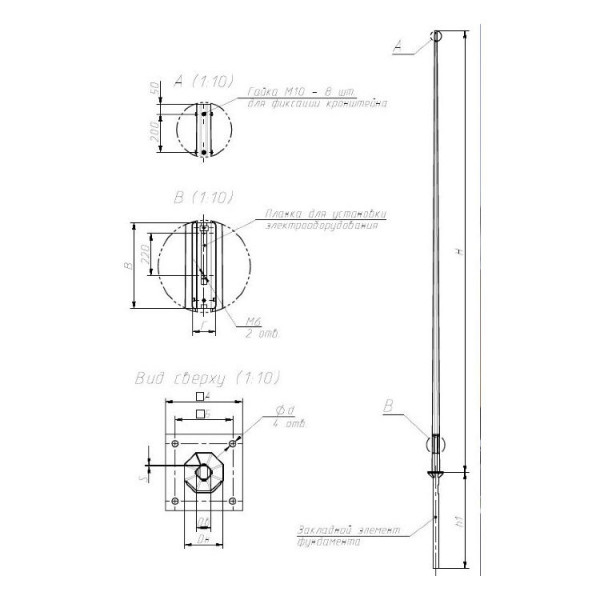 Опора НФГ имеет фланцевую конструкцию, что предполагает наличие технического люка, используемого для доступа к оборудованию, которое подведено через полую часть опоры.