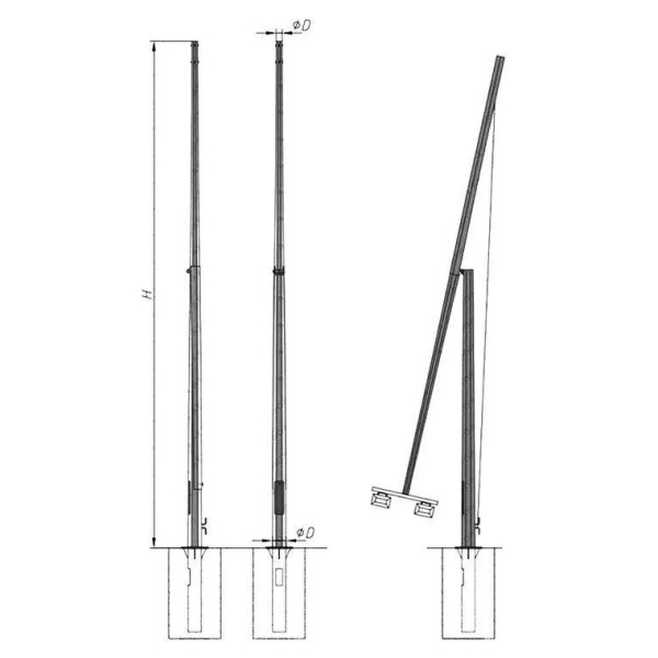 Выпускаются высотой от 6 до 20 метров. Питающий электрический кабель прокладывают под землей, а обслуживание столба освещения осуществляется через люк, расположенный в нижней части изделия (или в фундаменте). Способ установки — фланцевый. Складывание фонарного столба происходит за счет шарнирного механизма и балансира, уравновешивающего вес верхней части конструкции вместе с осветительными приборами и кронштейнами. Обычно балансир весит больше на 2 кг. Кронштейн к опоре крепится с помощью фланца, что делает соединение максимально надежным, исключающим выпадение кронштейна при складывании конструкции, и способным выдерживать сильные порывы ветра и вибрации.